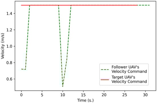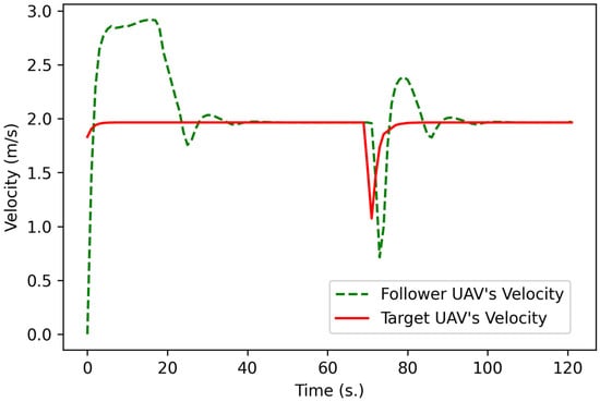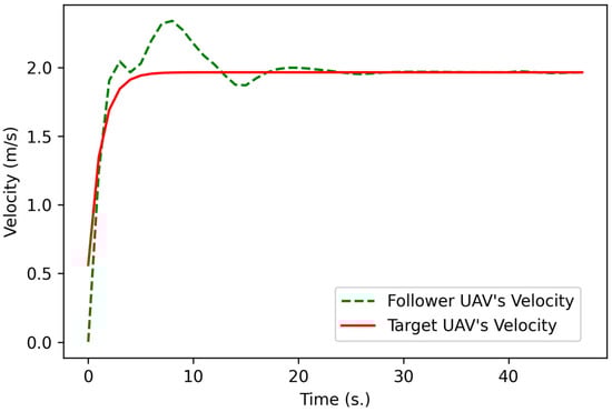 Comparison of the velocities of the follower UAV and target UAV in the full mission state simulation.
