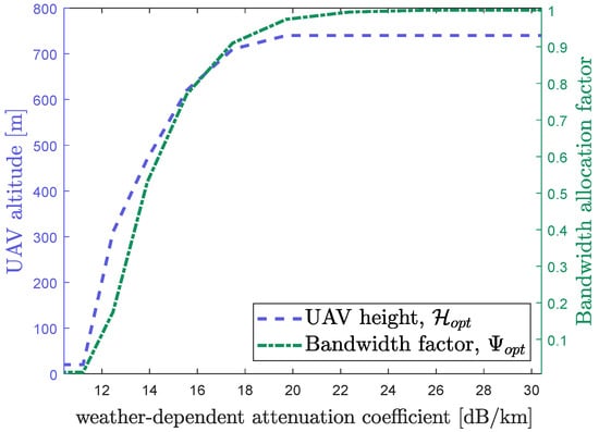 where and is the elevation angle of an edge user. Therefore, cell-edge-based optimal UAV altitude can be obtained from (9), which is widely adopted to determine the optimal altitude in UAV networks. It is worth noting that the UAV altitude obtained from (9) serves as a benchmark for the proposed model and a backhaul-aware UAV altitude optimization is performed in Section 3.2.