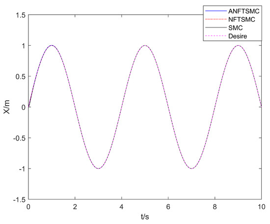where , is called the boundary layer. Due to the existence of the boundary layer, the saturation function improves the smoothness of the control signal and can effectively weaken the buffeting phenomenon. The greater the thickness of the boundary layer, the better the ability of the system to weaken the buffeting. However, the existence of the boundary layer will prevent the system state from reaching the zero point; instead, it will allow the system state to reach a small area around the zero point, which will cause a steady-state error. The greater the thickness of the boundary layer, the greater the steady-state error of the system. Therefore, an appropriate boundary layer to balance the contradiction between weakening the buffeting and improving the control accuracy should be selected.