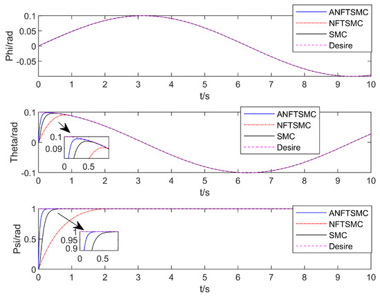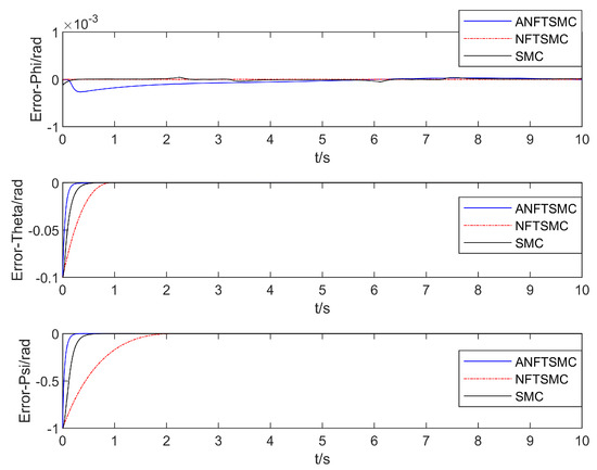 Comparison of the UAV’s attitude angle tracking error.