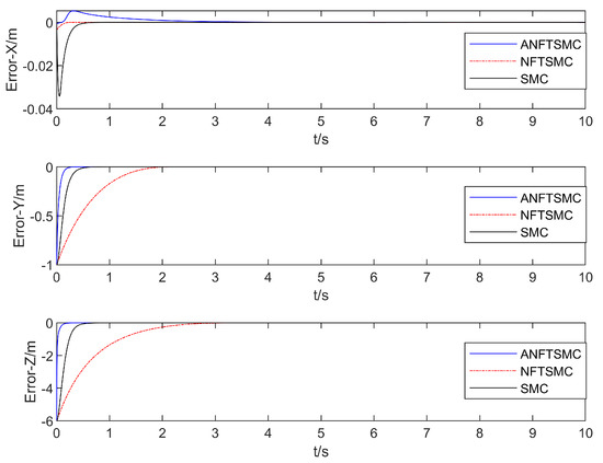 Figure 8, Figure 9 and Figure 10 show the comparison of the position and attitude errors of the aerial manipulation.