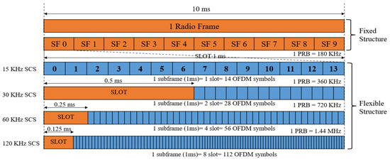 19] for flexible numerology. The minimum subcarrier spacing is determined by the carrier frequency, phase noise, and Doppler effect [