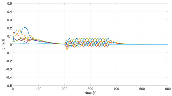 Combining Equations (A7) and (A8), we can write the dynamics of the coordination error vector in compact form as follows: