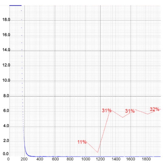 Representations of loss and mAP values during the training of YOLOv4-tiny in the setup with the highest number of training images. Chart shows poor performance of the model due to the large number of negative samples. The loss value remained low.