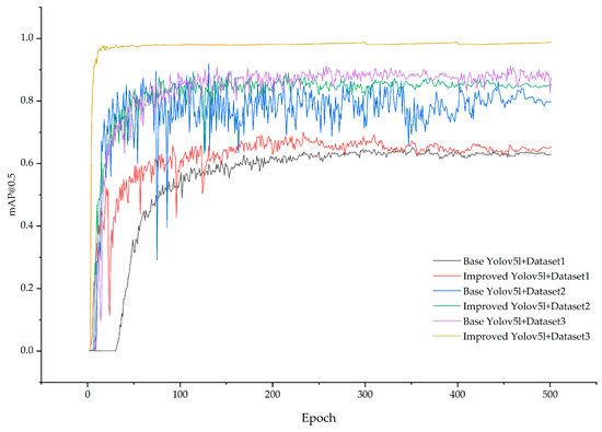 | Improved YOLOv5l | Dataset 1 | 0.830 | 0.657 | 0.700 | 46.65 | 0.061 |