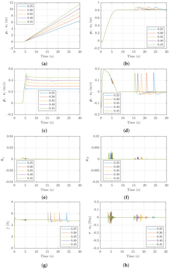 The first simulation included all phases of the trajectory. In this case, the mass of the load was tested at different values with a 0.02 kg (up to 4% of the total mass) drop after