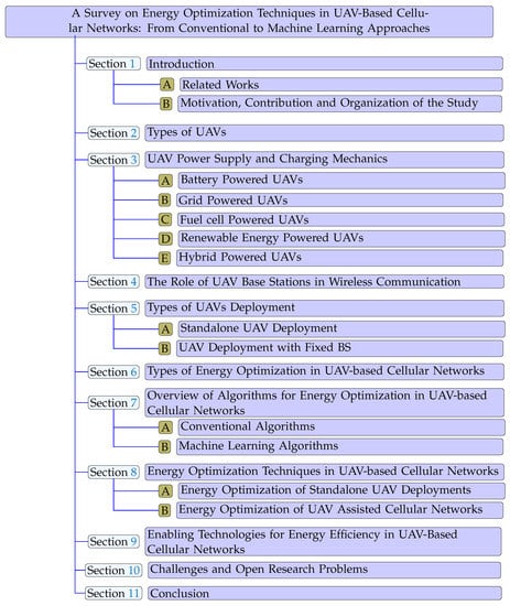 - For the sake of completeness of this survey paper, the overview of both conventional and ML algorithms employed in energy optimization of UAV-assisted wireless networks is given in Section 7;
