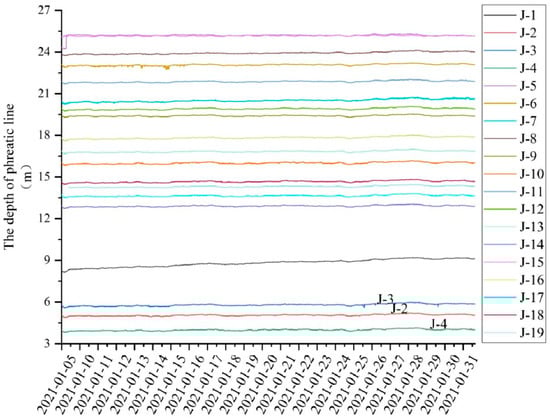 - Reservoir water level: an electronic water level sensor was placed on the overflow tower of the tailings pond.