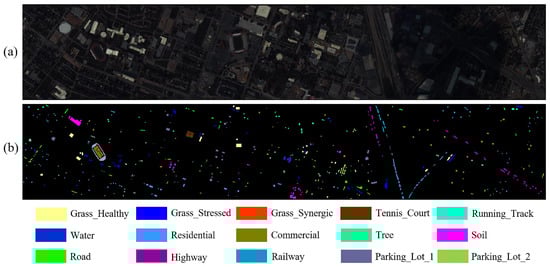 Figure 12. Houston dataset. (a) Pseudo-color image. (b) Ground truth.