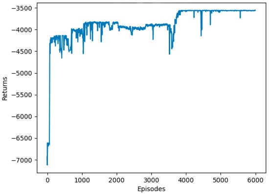 The reinforcement learning algorithms have been trained to the convergence state, their computational complexity is usually taken as the number of nonlinear transformations propagated once in the forward direction. Therefore, the computational complexity of the algorithm can be expressed as , where L is the number of layers of the algorithm’s strategic neural network, and is the number of neurons in the lth hidden layer.