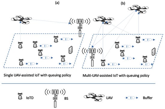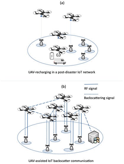 - Zhang, X.; Luo, W.; Shen, Y.; Wang, S. Average AoI Minimization in UAV-Assisted IoT Backscatter Communication Systems with Updated Information. In Proceedings of the 2021 IEEE SmartWorld, Ubiquitous Intelligence & Computing, Advanced & Trusted Computing, Scalable Computing & Communications, Internet of People and Smart City Innovation (SmartWorld/SCALCOM/UIC/ATC/IOP/SCI), Atlanta, GA, USA, 18–21 October 2021; pp. 123–130. [Google Scholar]