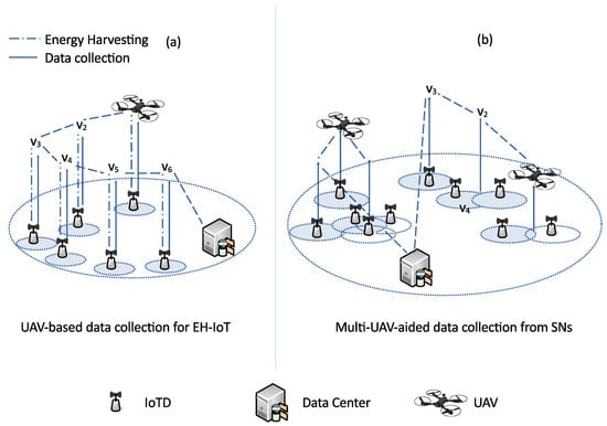 - Mao, C.; Liu, J.; Xie, L. Multi-UAV Aided Data Collection for Age Minimization in Wireless Sensor Networks. In Proceedings of the 2020 International Conference on Wireless Communications and Signal Processing (WCSP), Nanjing, China, 21–23 October 2020; pp. 80–85. [Google Scholar]