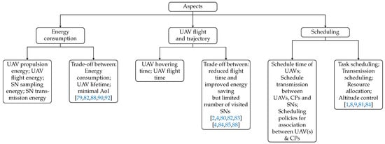 | [3,105] | Node sampling policy | The UAV trajectory planning for maintaining information freshness in IoT. |