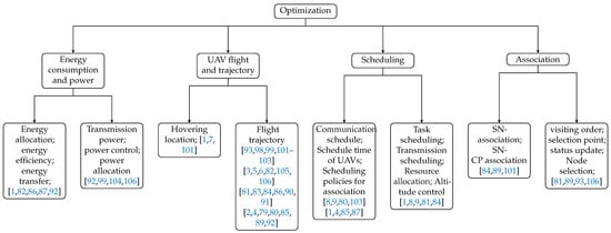 | [84,89] | SN association | Design of sensor node association and trajectory planning for UAV-assisted data collection. |