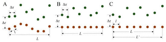 A comparison of the characteristics of NPCIT and CNPC is shown in Figure 4. The similarity between these two topographic normalization methods lies in the normalized point cloud height value Zn, which is the vertical difference (Δz) between surface feature points and ground points. Therefore, the vegetation height parameters extracted using the NPCIT-based normalized point cloud data do not change. The difference is that the distance between the CNPC-based topographic normalization surface feature point clouds is Δx, which is the cosine of the actual distance (l) and the slope gradient. The length L of the whole area is the same as the length before topographic normalization. However, the point cloud plane distance after topographic normalization based on NPCIT is the Euclidean distance (l) between the adjacent ground points in the real scene, and the length L’ of the whole region becomes larger than the original length L.