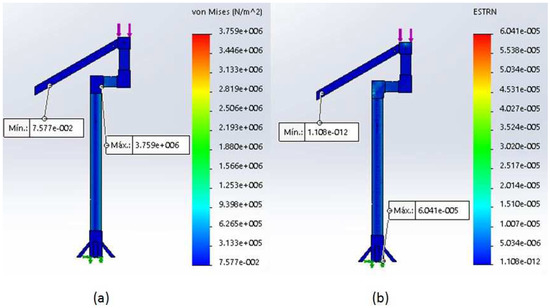 In other words, the design proposal does not present problems that complicate the performance of the prototype (displacements greater than 0.5 mm) or, in extreme cases, cause plastic deformations. It should be noted that, at the time of manufacture of the prototype, the shapes and dimensions for the structure suffered small variations; however, the experiments carried out demonstrated that the design remained functional, even with such possible variations.