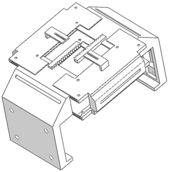 The opening or closing of the gripper is performed through a rack–pinion mechanism connected to a servo motor, where the ratio of linear to angular displacement is 1 cm = rad (if movement occurs only in one direction). In conclusion, the mechanism generates a total linear displacement of 2 cm for each third of a turn of the servomotor.