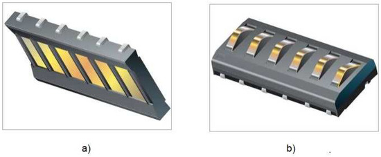 The battery used was a LiPo-type battery, with 14.8 V nominal voltage and 5200 mAh current. The case was designed based on the specifications listed in Table 1. The connectors shown in Figure 10 are used for power transfer and are responsible for connecting/disconnecting the battery from the charging center. The connectors in Figure 10a are fixed to the charging station, while those in Figure 10b are connected to the battery cases. The case connectors retract in both directions.