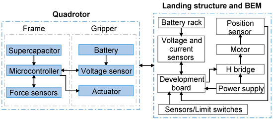 - The use of low-cost, low-energy sensors to know when the quadrotor has landed on the structure and battery exchange is required;