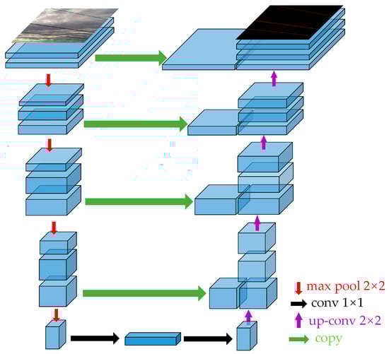UNet is a convolutional neural network for image segmentation, proposed in a paper by Olaf Ronneberger et al. in 2015, whose main idea is to combine the contextual and local information of an image to improve the segmentation accuracy [27]. The overall structure is shown in Figure 2.