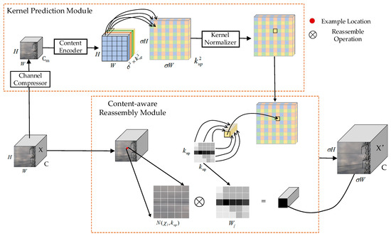 Finally, a new feature recombination module is constructed by fusing the created upsampling kernel prediction module with the original features.