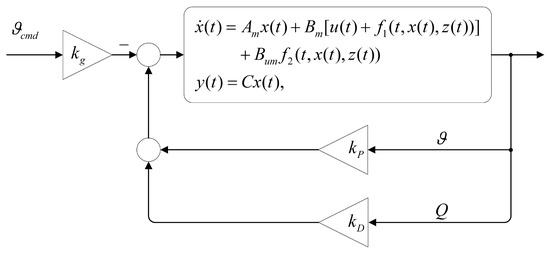 A block diagram of the base controller of the internal loop of the UAV is shown in Figure 2, where this is a proportion differentiation (PD) controller. s is the command of the pitch angle, and , , and are constant gains.