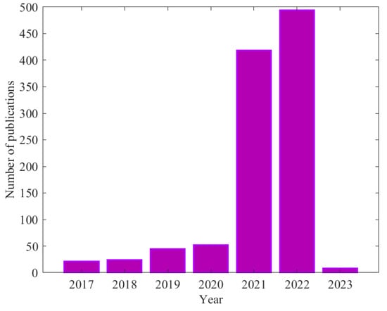 Number of publications in each year from 2017 to 2023 based on Web of Science.