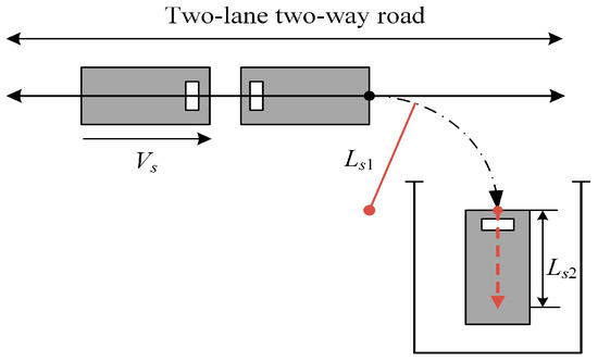 1. Straight time: The uniform speed Vs of the road segment is used as the basis for the calculation to guide vehicle i (i = 1, 2,..., n) to park in slot m (m = 1, 2,..., j), the straight time Ts,i of vehicle i is