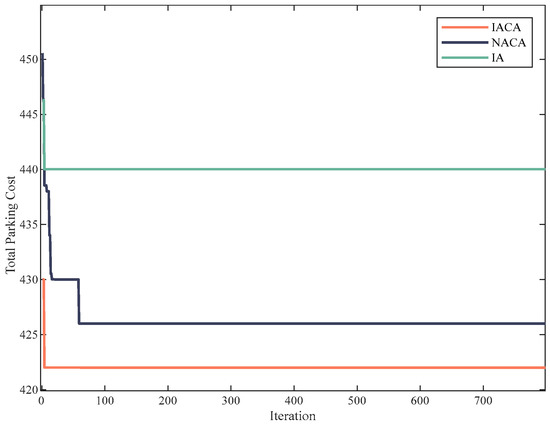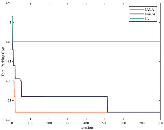 We propose an IACA–IA algorithm to pre-solve the ideal set of parameters for IACA in the parking scheduling situation in order to overcome the aforementioned issues. This gives the algorithm improved convergence and flexibility. The incentive degree of each group of antibodies is calculated using the time required to complete one iteration of each ant colony algorithm and the induced cost T of this parking system.