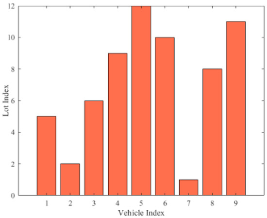- Parking slots allocation: The scheduling algorithm takes into account the stopping and waiting time, time through a straight line, turning time, and traffic time of the vehicles, starting from the least time-consuming of all tasks in the entire guided time period of the parking system. Each vehicle’s ideal target position is defined.