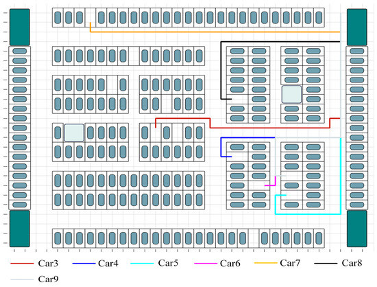 4. Stop-and-wait time: The guided automobiles in the parking lot must all come to a stop and wait at the entry according to their respective vehicle serial numbers before the scheduling task can officially begin. The vehicle stop-and-wait time Tw has a set value of 8 s because each vehicle and each task has the same function and the time is short.