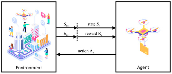 A Markov decision process (MDP) is a memory-less random control process in discrete time. Ronald A. Howard first improved the theoretical basis of the Markov decision process. Since then, MDP has been widely used in the fields of industrial automation, robotics, and artificial intelligence. A Markov decision process can be defined as a four-tuple , where S is a set of state sets and A is a set of action sets. The number of elements in these two sets can be finite or infinite; however, in general scenarios, the state and action sets with infinite numbers of elements are typically simplified to finite state and action sets. P is a probability density function, providing the probability of state ( at time t, transferring to state () at time t + 1 under action (). Finally, R is a reward function, , providing the reward value obtained after state is transferred to state under the action . The action at any moment is provided by the strategy function for a given state . The optimization goal of MDP is to determine the optimal strategy function through some method, thus achieving the maximum reward expectation of the system.