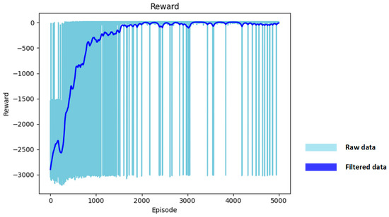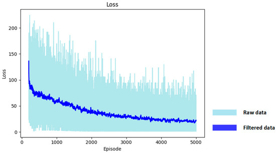 where represents the parameters of MainNet and represents the parameters of TargetNet. In this way, the action corresponding to the optimal action value under the state can be obtained with the MainNet, while the obtained action’s value under the state can be calculated to find the target value using the TargetNet, thus mitigating the over-estimation problem.