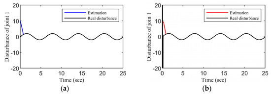 Disturbance estimation of joint 1 for FTO: (a) Case 1; (b) Case 2.