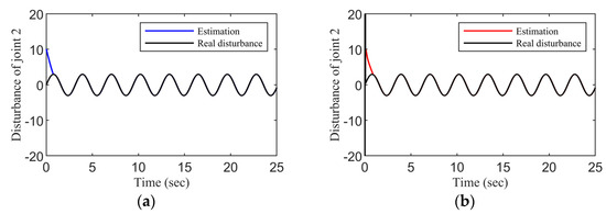 Disturbance estimation of joint 2 for FTO: (a) Case 1; (b) Case 2.