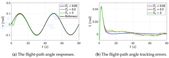 respectively, where the coefficients of the characteristic polynomial of are and . The desired flight-path angle generated by this reference system is rad.