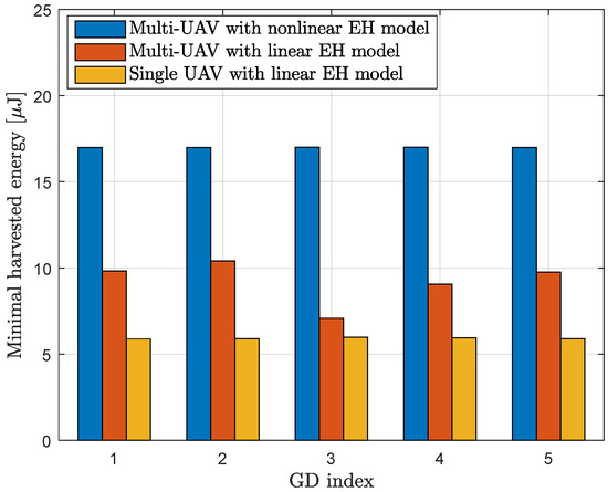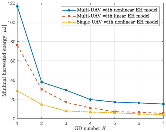 Figure 7. Note that increasing the GD number results in a clear pattern, i.e., when we evaluate the minimal harvested energy with
