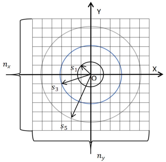 The image plane is divided into by pixel. A coordinate system is established in the current image plane, and the coordinates of the desired position in the image plane can be set as the origin. In the process of discretizing the image plane space, it is necessary to divide the pixel plane into a certain number of grids. The image plane can be divided into segments along the x-axis and segments along the y-axis, and it needs to meet the complete division, i.e.,
