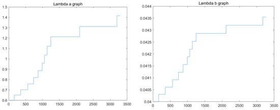 Figure 5 shows the two groups of servo gain obtained through deep reinforcement learning. In the beginning, small servo gains are selected to avoid target loss, because a large gain value will lead to an excessive control input and cause the UAV to move violently. In the later stage, a large gain is chosen to improve the efficiency of IBVS.
