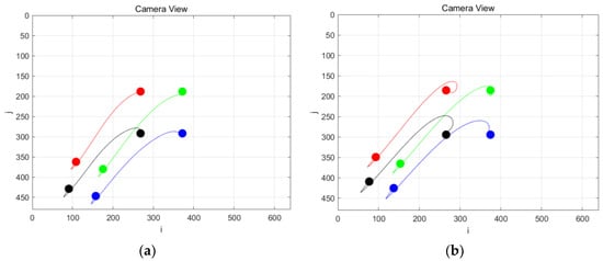 To avoid feature loss, several methods have been proposed in recent decades. Hajiloo et al. [19] optimized the trajectory of features in image frames using the MPC method to address the FOV constraints. Chesi et al. [20] used the in-plane trajectory of a camera in three-dimensional Cartesian space but did not optimize the trajectory of features in the image frame [20]. Huang et al. [21] designed a constraint controller using the control obstacle function and quadratic programming to prevent the target on the ship exceeding the FOV of the camera. Zhang et al. [22] presented a new real-time optimal trajectory planning method for a rotorcraft with the constraint of speed and inputs of thrust and altitude. Their framework ensures the field-of-view constraints on the visual servoing control of the rotorcraft by transforming the FOV constraint into an altitude constraint. Zheng et al. [23] established a control barrier function to ensure the FOV constraint to maintain visibility. The barrier function is used to create a visible range that sets the maximum distance between the center of the image plane and the visual feature coordinates in the image plane. This visible range can be defined as the upper limit of the distance between these two points.