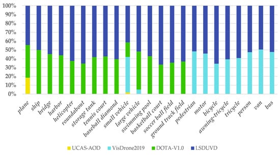 Figure 10. The above figure shows the statistical results of the proportion of sample types and instance numbers for UCAS-AOD, VisDrone2019, DOTA-V1.0, and LSDUVD datasets.