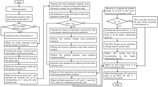 of the last UAV to complete the data collection task is obtained, as shown in Line 10–Line 13 of Algorithm 2. The pseudo-code of the MTPA-GA is given in Algorithm 2.