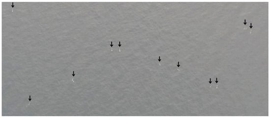 Enlarged sample picture of finless porpoises in the present study (taken during session #6). Arrows indicate finless porpoises.