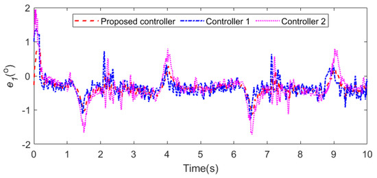 For joint 1, the errors of the tracking position, velocity, and acceleration are defined as