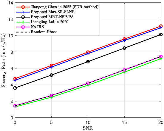 Figure 3. Secrecy rate versus the SNR.