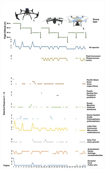 Further multi-site studies of drone–waterbird interactions are required, and these could incorporate repeated flights over various intervals to assess the capacity for, and duration of, any habituation. We also note that many other factors that were not examined here may influence waterbird responses to drones and could be incorporated into future multi-site research. Such factors include: