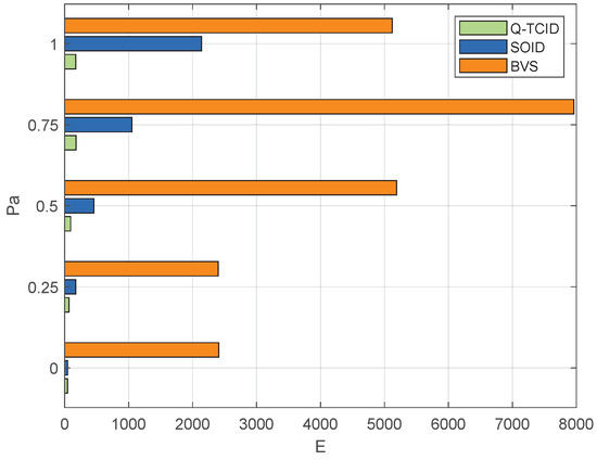 To evaluate the feasibility of the suggested algorithm, considering energy consumption related to intrusion detection is crucial. In this regard, energy consumption primarily arises from the system-level audit process. Figure 5 shows the comparison of energy consumption of Q-TCID, BVS, and SOID under the same and different attack probabilities of malicious nodes. As the figure illustrates, Q-TCID exhibits significantly lower energy consumption compared to BVS and SOID. This is mainly because the proposed algorithm reduces the number of nodes misjudged or missed during the host-level voting process, and the optimized system-level audit strategy reduces the number of audits required, thereby significantly reducing the energy consumption of intrusion detection.
