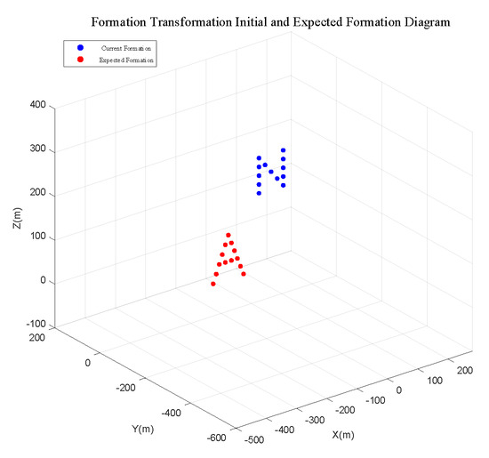 Figure 13, Figure 14, Figure 15, Figure 16, Figure 17 and Figure 18 depict the initial state diagrams of formation transformation and the corresponding target-matching results.