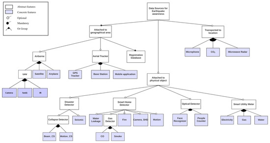 Feature model representing the domain of data sources for detecting the effect of earthquakes.