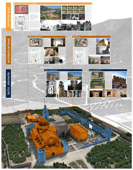 Specifically, the methodology aimed for data integration, creating a comparative matrix among different types of measurements, information, and metadata, describing and constructing a heterogeneous database for each monument at various levels. The diversity of data, in relation to the diversity of analyzed architectures, becomes functional both for evaluating process replicability and for the proper functioning of the interactive platform, the model utilization system.